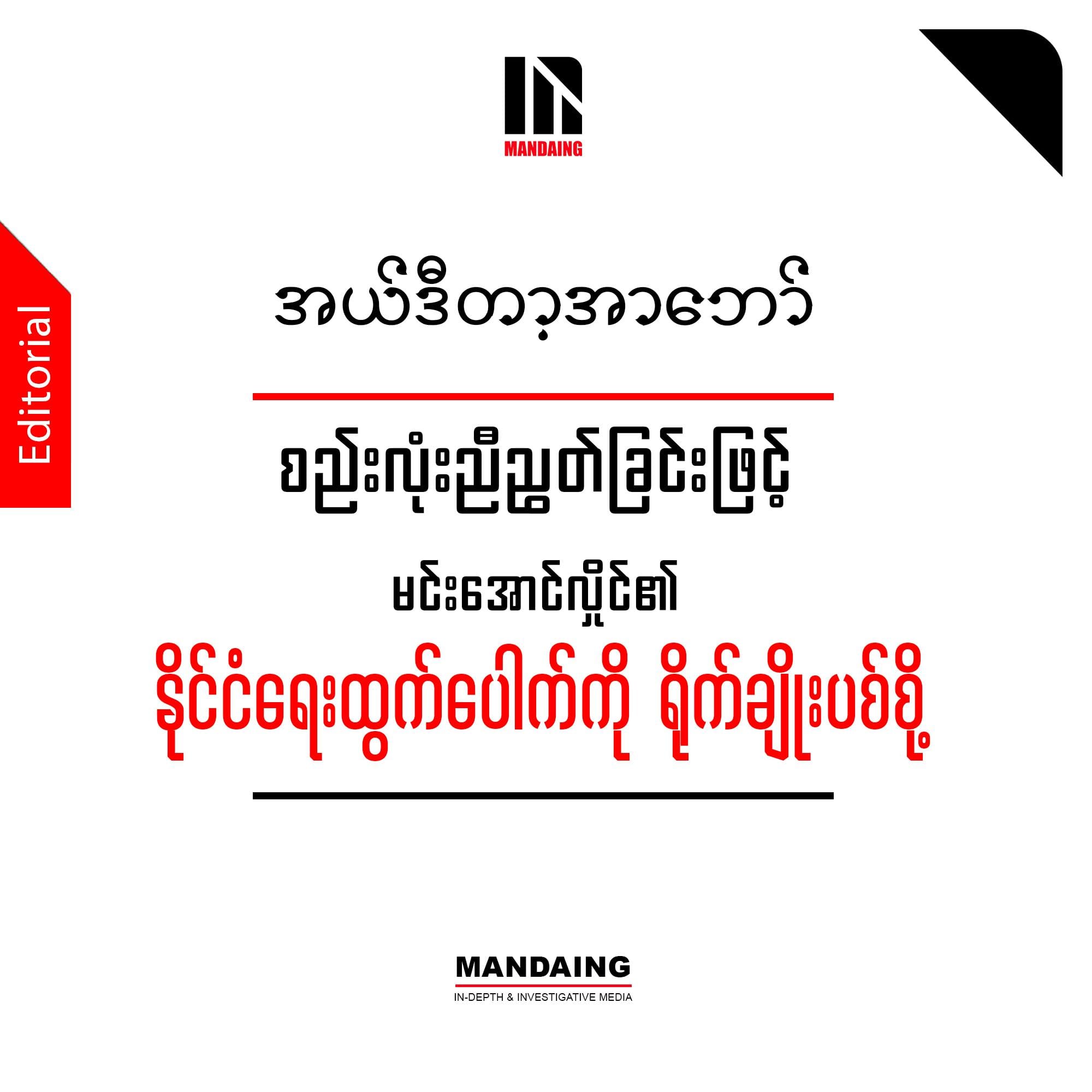 ထို့ကြောင့် တော်လှန်ရေးမိတ်ဖက်အချင်းချင်း အငြင်းပွားအချင်းများနေခြင်းများကို ရပ်တန့်ဖို့ကောင်းသည်၊ ဆင်ခြင်ဖို့ကောင်းသည်ဟု ကျွန်ုပ်တို့ မဏ္ဍိုင်သတင်းဌာနက ရှုမြင်သည်။