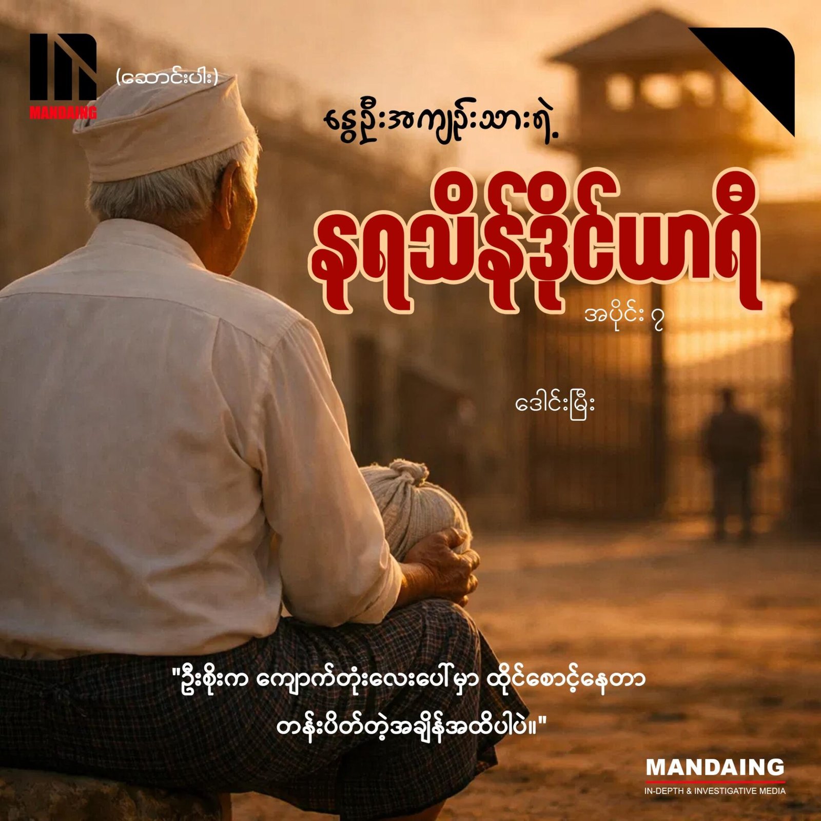 သူ အဲဒီနေ့က လွတ်/ငြိမ်းပါသူတွေကိုလာခေါ်တဲ့ အဆောင်မှူးရုံးခန်းရှေ့က မြေကွက်လပ်မှာရှိတဲ့ ကျောက်တုံးလေးပေါ်မှာ ထိုင်စောင့်နေတာ တန်း(ထောင်)ပိတ်တဲ့အချိန်အထိပါပဲ။
