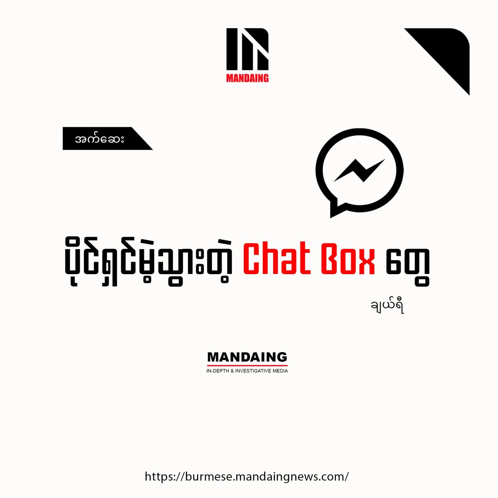 မီးမစိမ်းတော့တဲ့ facebook chat box ကိုလည်း နေ့တိုင်းစာသွားပို့ပြီး ဘယ်တော့လိုင်းပြန်တက်လာမလဲ၊ စနောက်နေတာမို့လားဆိုတဲ့ မေးခွန်းတွေ ဆက်တိုက်ပို့ နေမိပါတယ်။ ပုံမှန်ဆို အလုပ်ကိစ္စတွေ အတည်အတန့်ဆွေးနွေးလိုက် စနောက်ပြီးပြောလိုက်နဲ့ စည်ကားနေတဲ့ chat box လေးက ခုတော့ တိတ်ဆိတ်လွန်းလှပါတယ်။