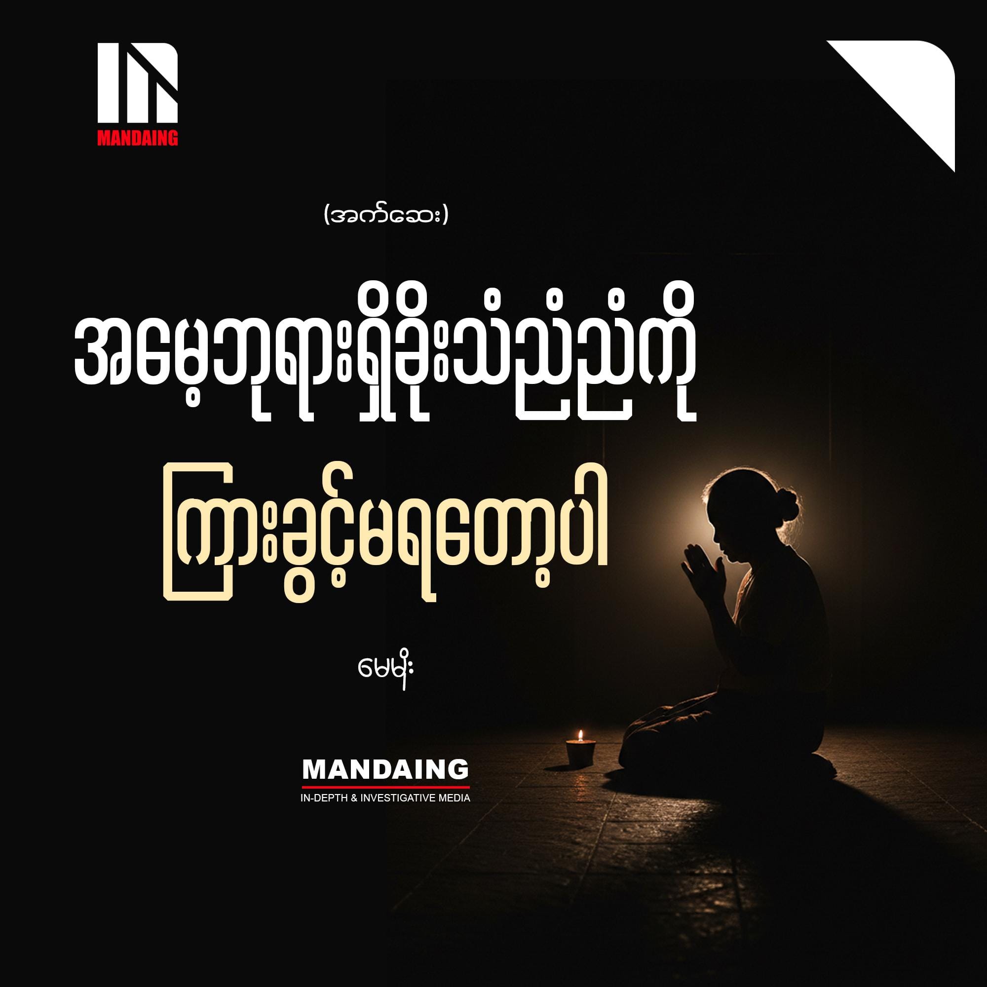 ၂၀၂၂ ခုနှစ်၊ ဇွန်လ ၃၀ ရက်ဟာ ကျွန်မအမေရဲ့ မနက်ခင်း ဘုရားရှိခိုးသံကို ကျွန်မနောက်ဆုံး ကြားခဲ့ရတဲ့နေ့ပါ။ အဲဒီနေ့က အမေ့ဘုရားရှိခိုးသံထဲမှာ ဝမ်းနည်းမှုတွေ အပြည့်ပါနေတာ ကျွန်မ ခံစားခဲ့ရပါတယ်။